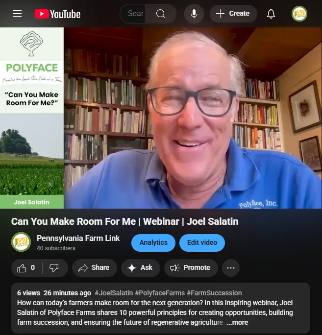 How can today’s farmers make room for the next generation? In this inspiring webinar, Joel Salatin of Polyface Farms shares 10 powerful principles for creating opportunities, building farm succession, and ensuring the future of regenerative agriculture. From unlocking hidden potential on the land to fostering entrepreneurial spirit in children, Joel offers practical strategies and personal stories that show how farms can thrive for generations to come.