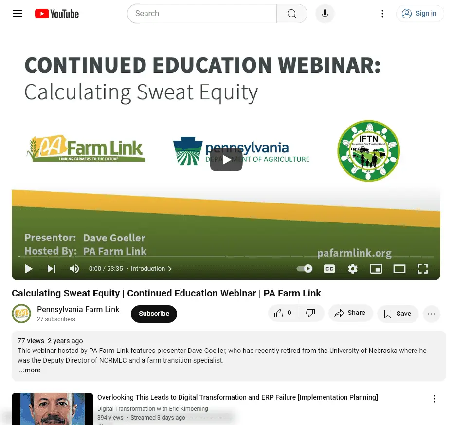 This webinar hosted by PA Farm Link features presenter Dave Goeller, who has recently retired from the University of Nebraska where he was the Deputy Director of NCRMEC and a farm transition specialist.
