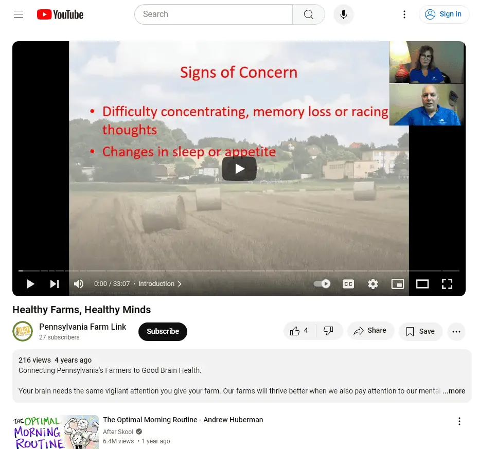 Connecting Pennsylvania’s Farmers to Good Brain Health. Your brain needs the same vigilant attention you give your farm. Our farms will thrive better when we also pay attention to our mental health.