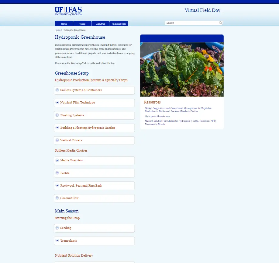 University of Florida – Hydroponic Greenhouse Virtual Field Day